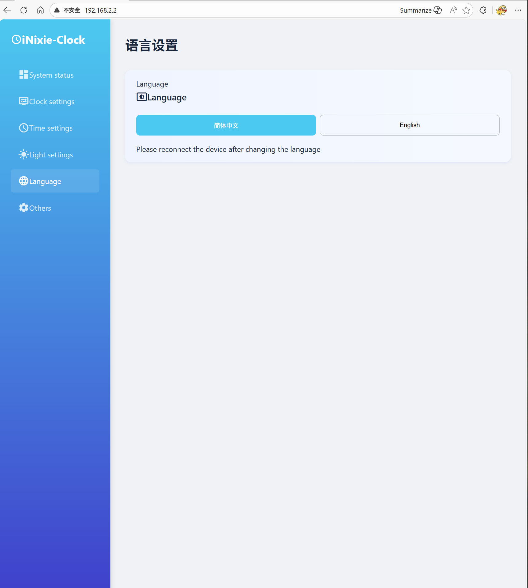 INIXIE CLOCK 6 supports multiple language switching, currently supporting Chinese and English.